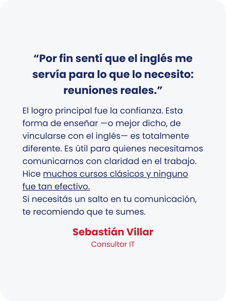 Tu inglés deje de ser una traba y se convierta en una herramienta real para tu impacto profesional.